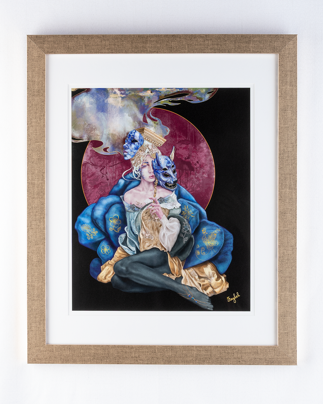 This digital original giclée signed by the artist was originally exhibited with the Women United Art Movement for their Winter 2024 Group Exhibition "Stronger Together". "Timbretock" is currently on display at Poetic Tiger Gallery's group show "Yours Truly", which started November 1, 2025, It is the first illustration from FAYBEL's dark romance fantasy narrative of the same name: many paintings from this collection have been scheduled for magazine/book publication and are award winning. "Timbretock" was a Beautiful Bizarre Art Prize Featured Entry in 2024 and has recently been published in Beautiful Bizarre Magazine Issue 49, Women United ART Magazine Issue XI, Hyperlux Magazine (online) and Bold Journey Magazine (online).